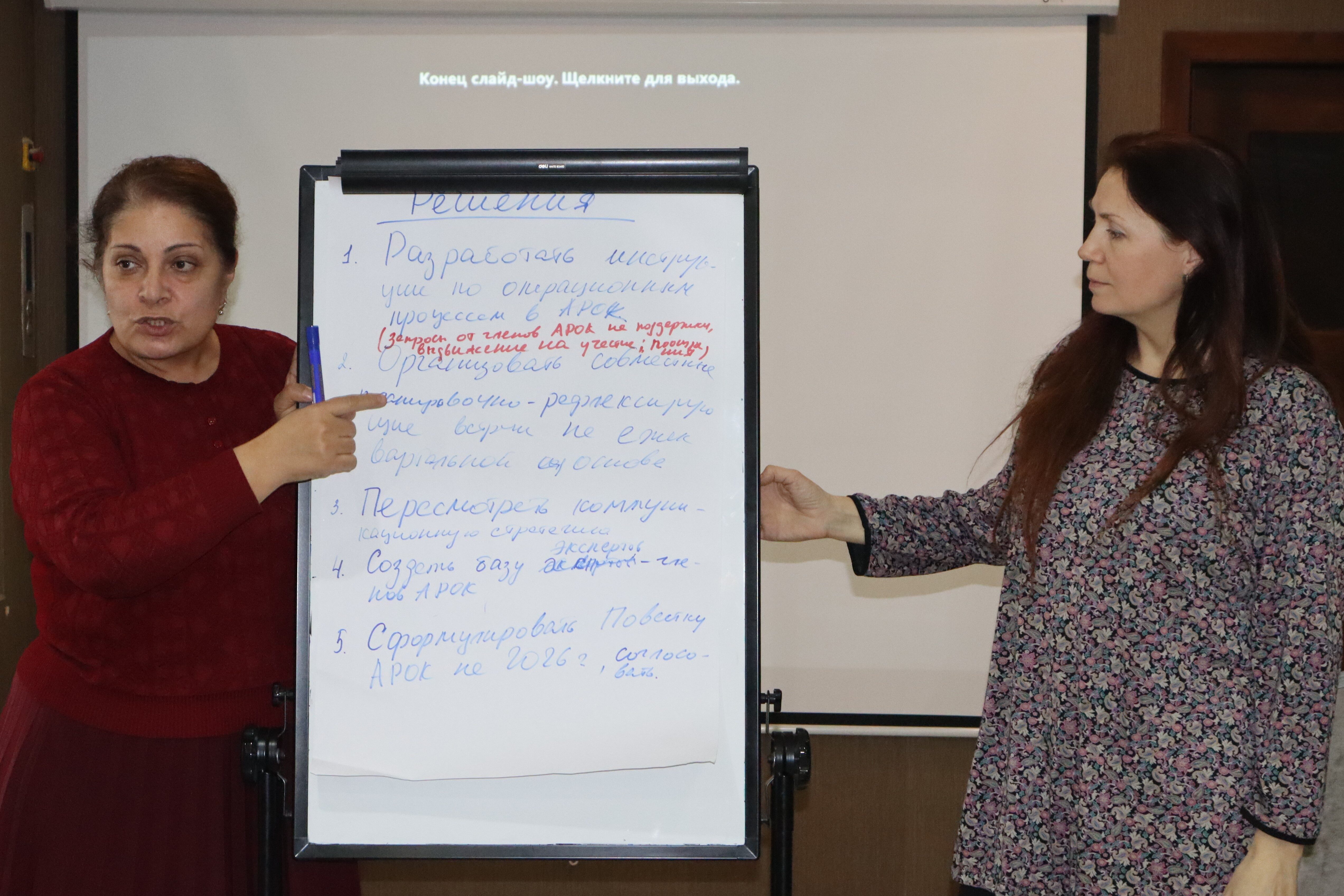 В ходе встречи участники совместно проанализировали, насколько деятельность АРОК соответствует её миссии и стратегическим целям, обсудили сильные стороны Ассоциации и ключевые вызовы, а также оценили роль исследовательской деятельности и методологии в обеспечении качества и доверия.