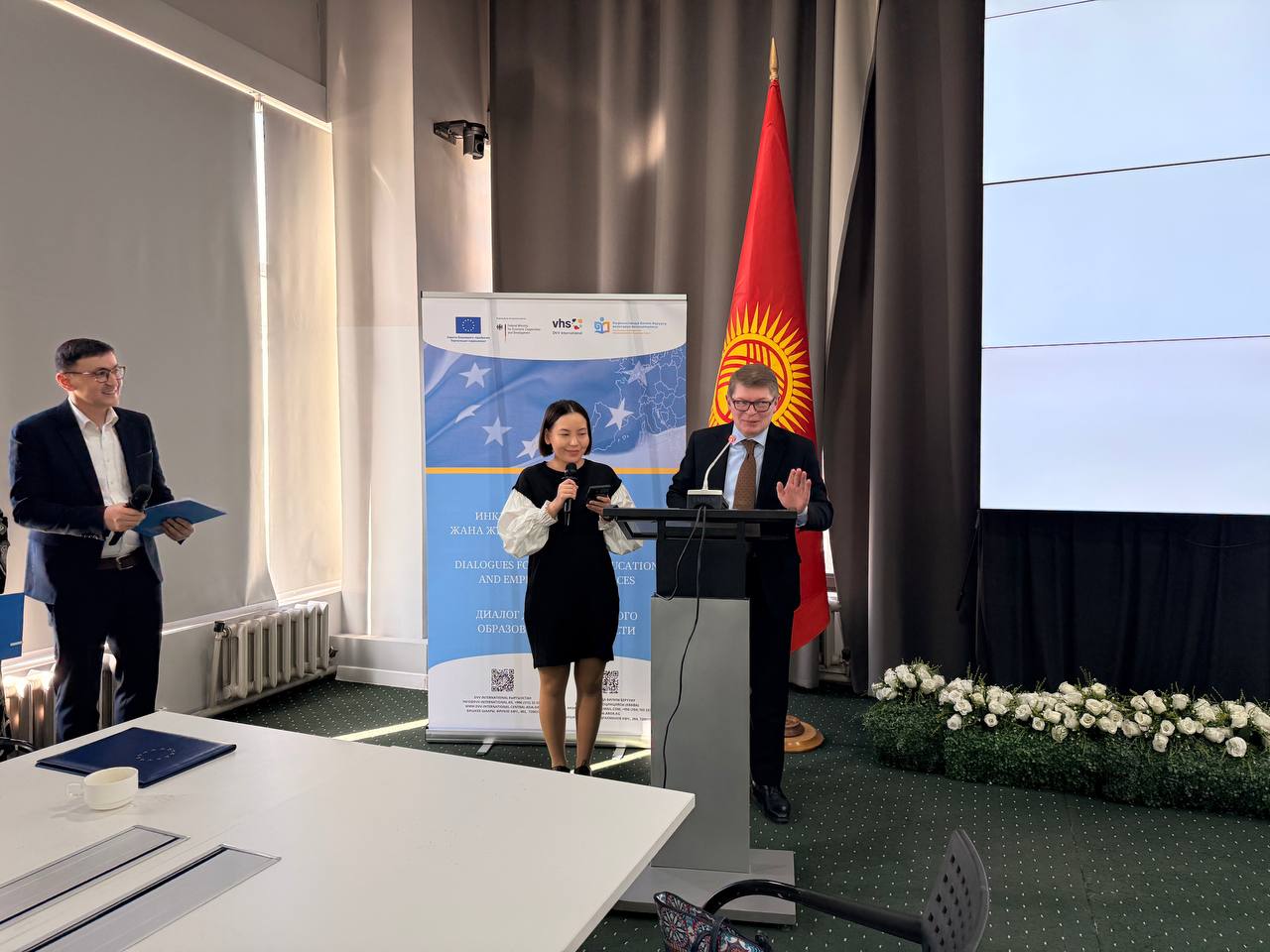 Проект реализуется DVV International при поддержке Европейского Союза и Федерального министерства экономического сотрудничества и развития Германии в партнерстве с Ассоциацией развития образования в Кыргызстане, Кыргызской ассоциацией образования взрослых и Национальной сетью «Жаңырык».